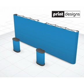 See MoreThe straight pop up display wall is constructed from two fully magnetic 'express' pop up stands interlinked with a ghost panel. This configuration will create a wall of Metres or more in width, ideal for larger stand spaces.
