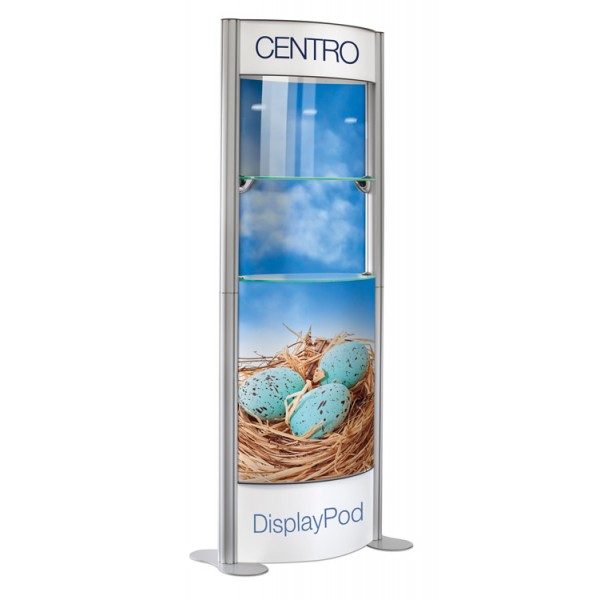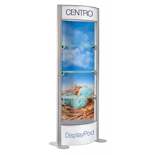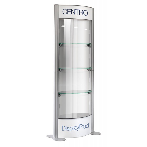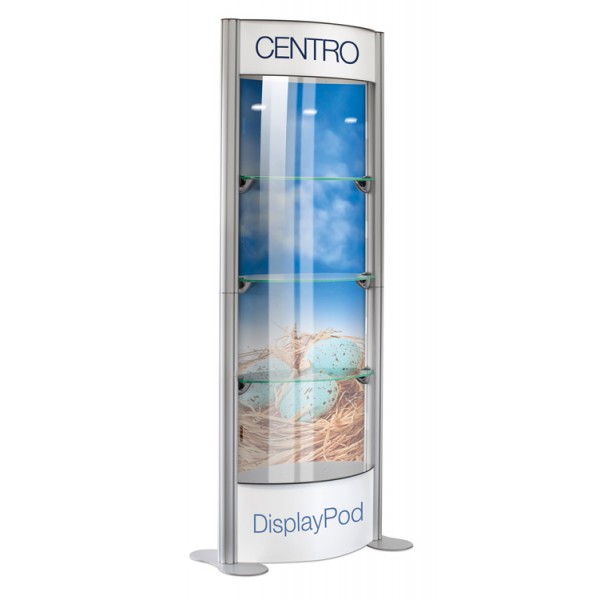 The Centro Display Pod is an attractive and practical cabinet which is ideal for displaying products at your exhibition or showroom. The header and base panels can be branded with your company logo and we can even print onto the back panels of the cabinet or they can be left clear as standard, allowing your customer's dual viewing aspects.
