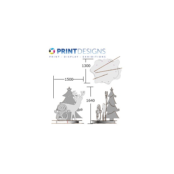 This montage formed from a Christmas Tree, Reindeer and Snowman can be printed and delivered in one week. On placing your order we will forward you the design template onto which you can overlay your own artwork prior to sending back to us for printing.