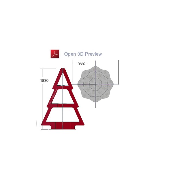 This Christmas Tree design is both a tree display and a display shelf rolled into one. The three concentric shelves are strudy and as with the rest of the display can be bespoke printed to include your own artwork.
