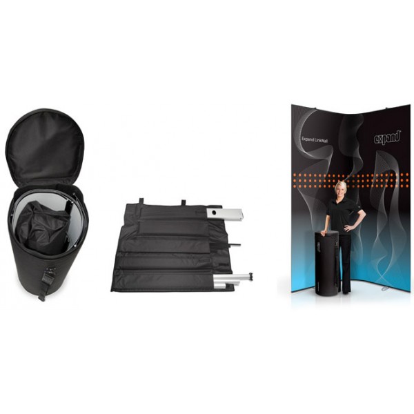 In order to transport the system you can choose the standard soft cylindrical bag which comes with the bundle and will carry both stands and the flexible panel or the much more substantial optional Expand Podium Case which will hold 3 LinkWall units and 2 flexible linking graphics. You can also choose to illuminate your design with the optional lights.
