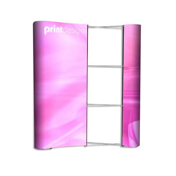 Regular Height Curved Stand: 2692mm wide x 2225mm tall (2 front panels at 673mm wide, 2 curved D-end panels at 673mm wide)