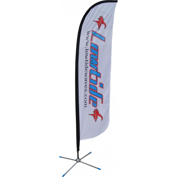 Single sided banners are 90% translucent which means that the prints are partially viewable from the rear. Double sided feather shaped flying banners use two prints which are sewn back-to back which allows for wording to be the correct way around no matter which way the design is viewed. A blockout liner is sewn between the two prints to prevent any show through to the other side