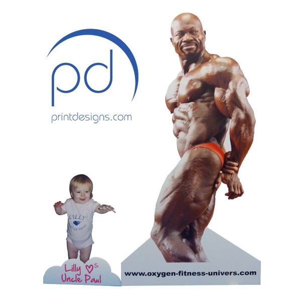 Our cardboard cut-outs are printed onto a 5mm thick card and supplied with a strut or an aluminium base so that they can be free-standing.
