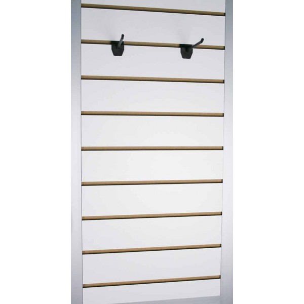 The optional slat wall panel for the Linear display stand when used in conjunction with the slat wall hooks means you can hang lightweight products on your display. The slat wall display is 1000mm (h) x 750mm (w) and comes in white. You can also purchase the slat wall hooks under the accessories tab.