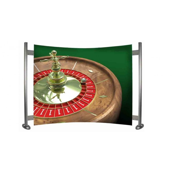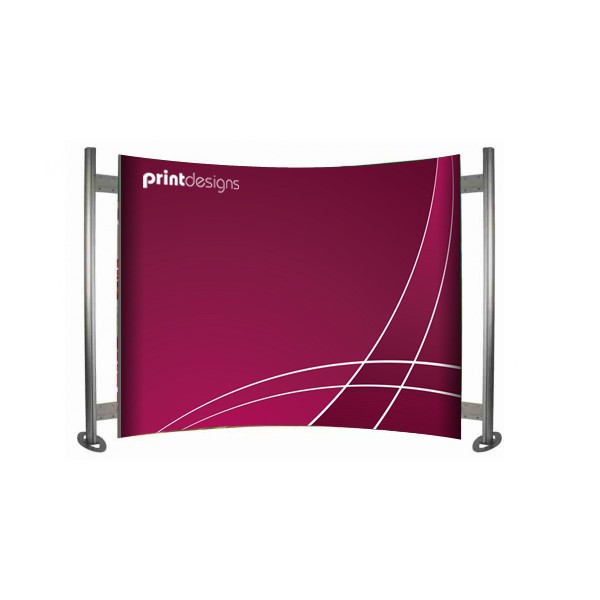 The Linear Curved Graphic Panel Kit B is available in 3 width options, each with a standard height of 2 Metres. The 75mm diameter round modular post system allows for the attachments of optional accessories. Steel oval bases are supplied with this system, thus making it very stable and ideal for heavier traffic areas.