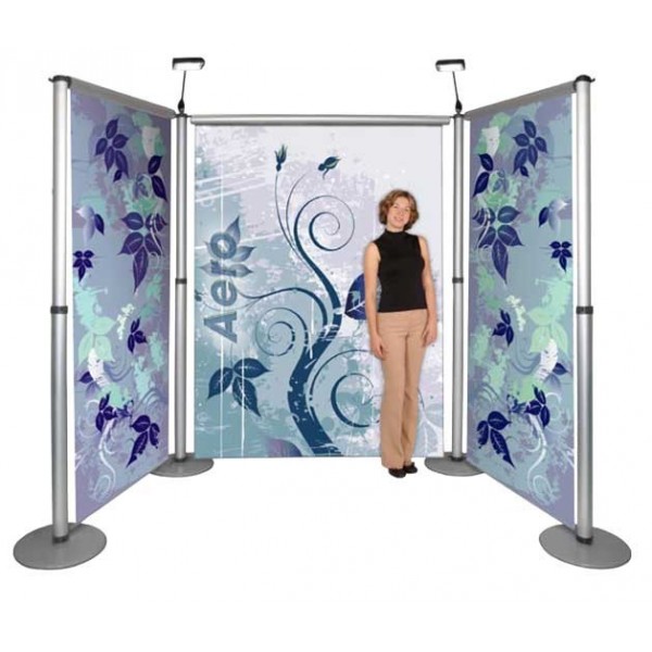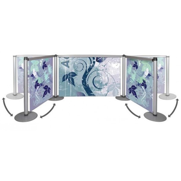 The Aero Banner Stand comes as a package that includes three linking banner stands. By adjusting the angle between each of the three sections and even the height of each section, it is possible to create a wide variety of configurations that can be tailored to suit your floor space. The Aero modular banner stand system can even be expanded by linking several kits together