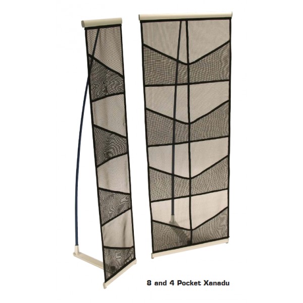 - Xanadu literature holdr pack comes with mesh fabric literature pockets, aluminium supporting base, glass fibre upright pole & nylon carry bag.