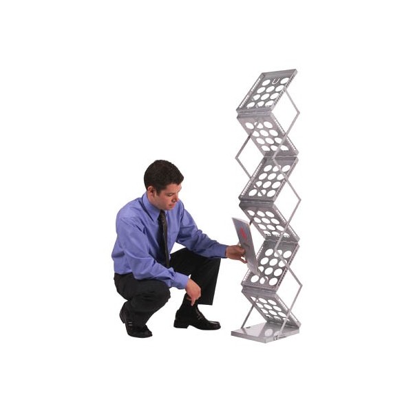 The Zed Up literature holder is a compact, folding literature dispenser with 6 A4 size pockets (3 on the front and 3 on the back). The Zed Up literature holder is made from aluminum and comes complete with a padded carry bag.