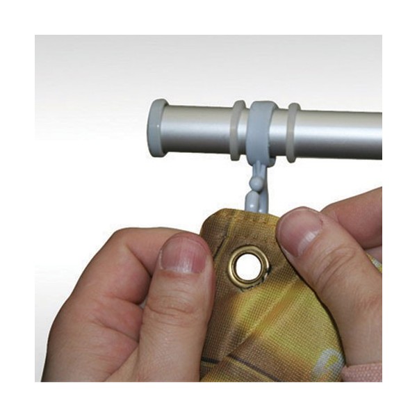 - Graphics are secured to the frame with supplied elastic bungee cords