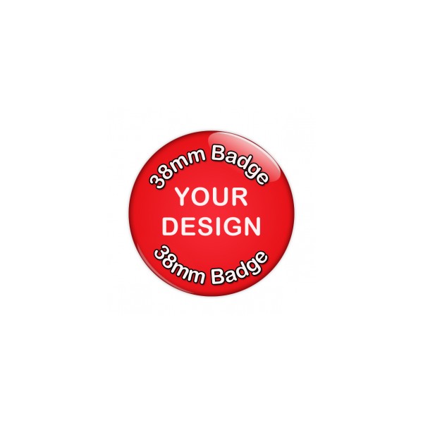Our 38mm diameter pin badges can be produced quickly and with a minimum order quantity of only 50.