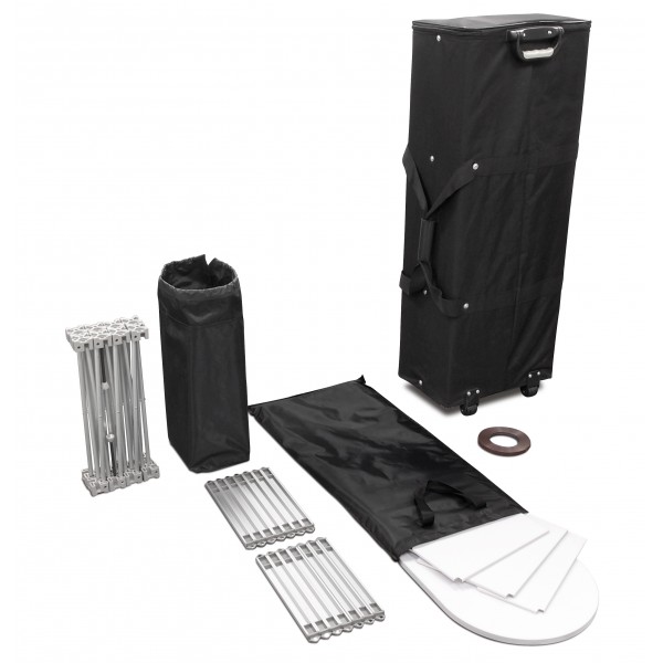 For convenient transport, the unit comes supplied with a wheeled carry bag which will house the hardware and the graphic.