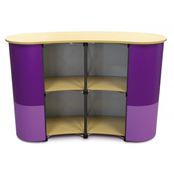 Based around the Eurostand quality pop up framework and supplied with an attractive beech coloured laminated top, the stand is fast and simple to assemble.