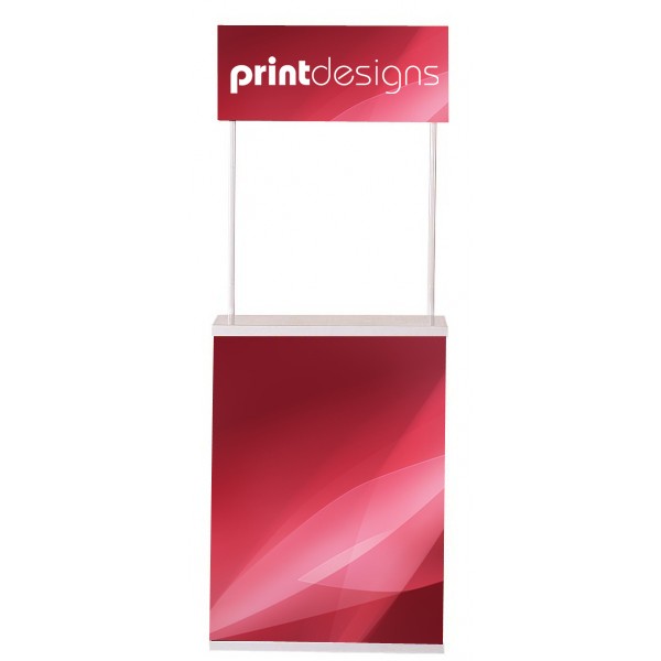 Because of its height, separate working and presentation levels Bonus is ideal for exhibitions, receptions and promotions where coupon filling, registration details etc. have to be completed. The header panel on the Bonus promotional counter is available as standard single sided or optional double sided so high-level lignage can be viewed from both front and rear.