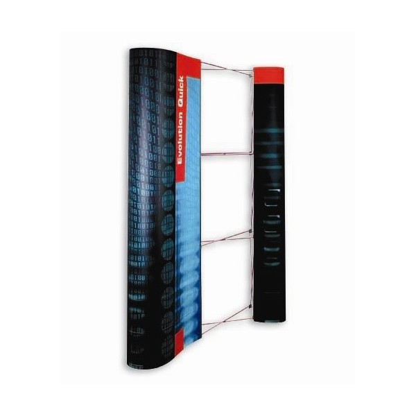 The Evolution pop up can be supplied with either printed panels or loop nylon panels (fabric). If purchasing a stand with loop nylon panels you can fasten your own prints and posters to the 'skin' with hook type velco fasteners (see downloadable data sheet for the range of available fabric colours).