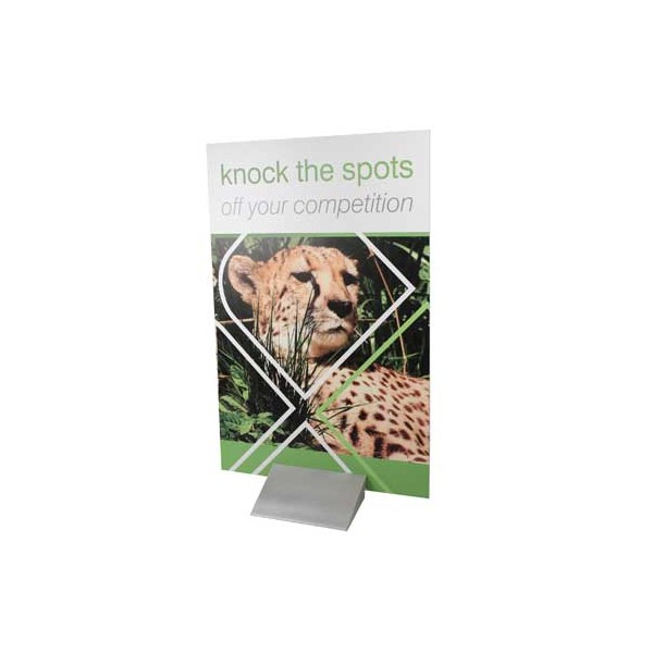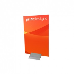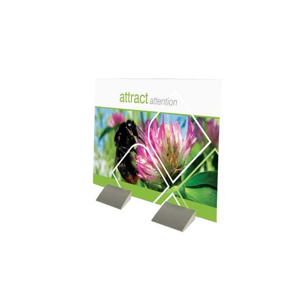 Rather like the Wedge banner stand, the Fantasy literally clamps the printed sheet between two halves of the base, thus keeping it stable and upright. For more detailed user instructions and images, you can downloasd the product date sheet from the link at the bottom of this page.